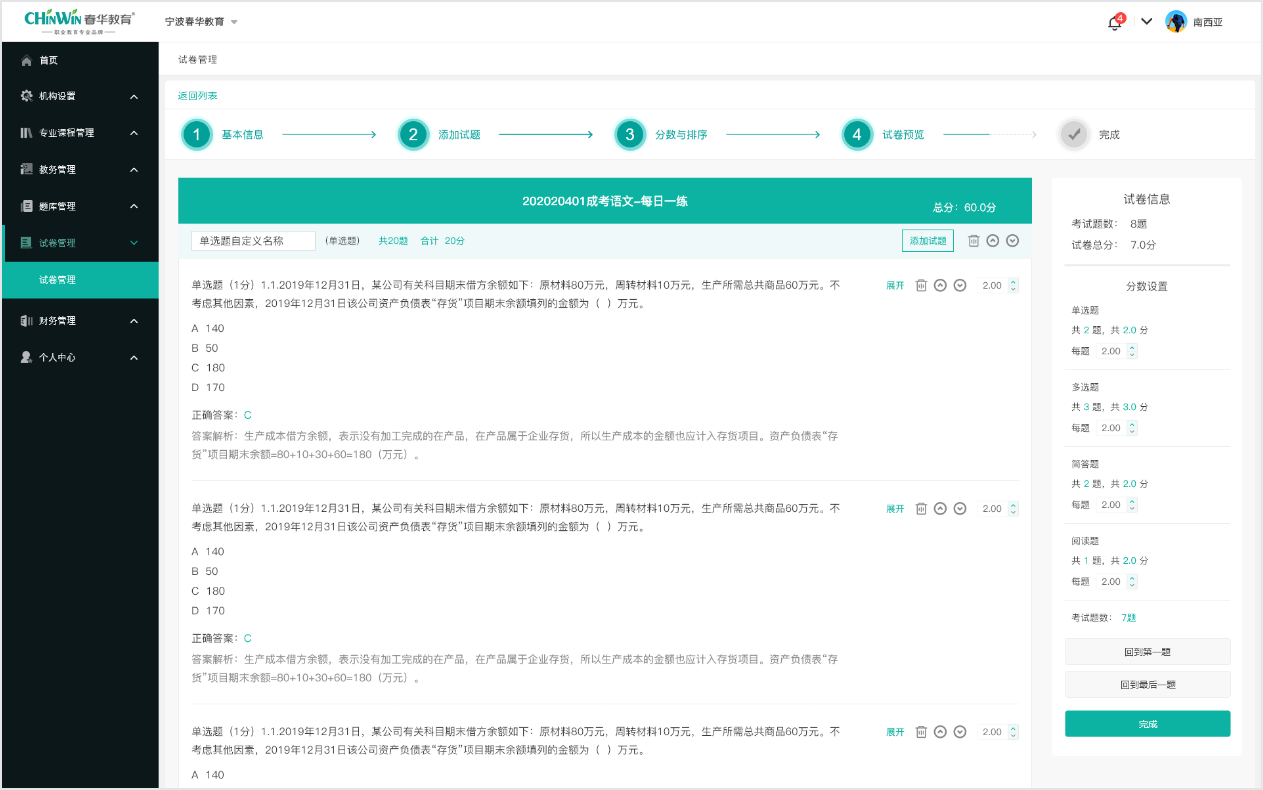 珍学网在线教务管理系统,可在线实现,学员管理、课程授权、班级管理、课程管理、考试管理等基础教学管理内容,还可对错题试卷进行分析,提高教学质量,更能对教务教师进行教学质量跟踪,从而优化教学管理模式。